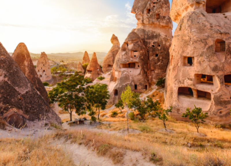 Visits to the Goreme Open Air Museum, Zelve Valley, Avanos, and Uchisar on a full-day tour of Cappadocia. The area, which has an atmospheric elegance, was a Roman province and a sanctuary for persecuted Christians in the early days of the Roman Empire. Cappadocia is known for its rock churches dating back to the persecution period, as well as its underground settlements, which are highly complex tunnel networks. Overnight in Cappadocia.